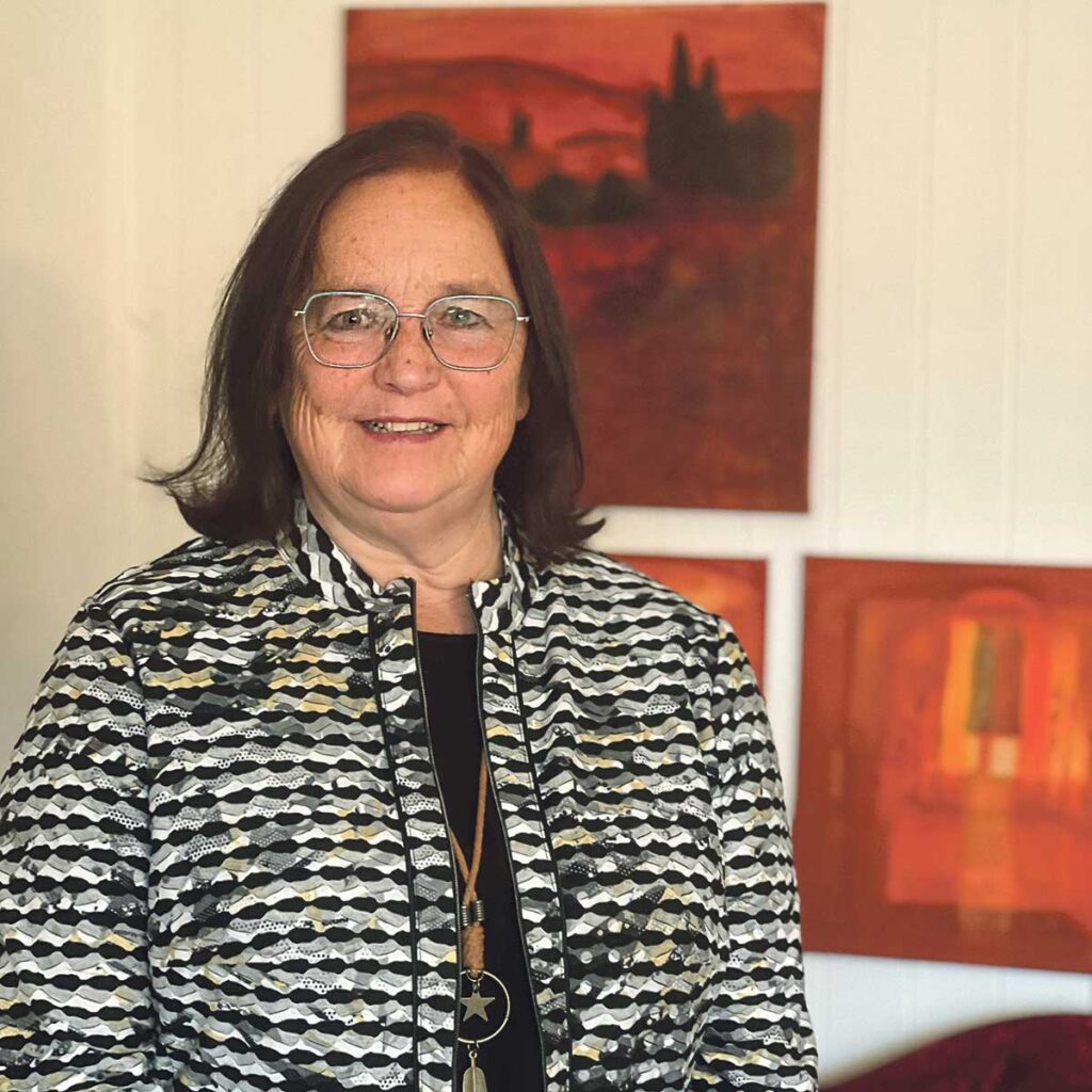 Nach unserem spannenden Gespräch mache ich noch ein Foto von Jacqueline. Im Hintergrund sind drei ihrer eigenen Bilder zu sehen. «Ich habe viel gemalt und gestaltet», erzählt sie mir und zeigt mir zahlreiche schöne Werke, die in der Wohnung einen Platz gefunden haben. Am Boden stehen ein paar Bilder an ein Regal gelehnt: «Diese kommen vielleicht in die Rossmarie…, wenn sie denn passen.»